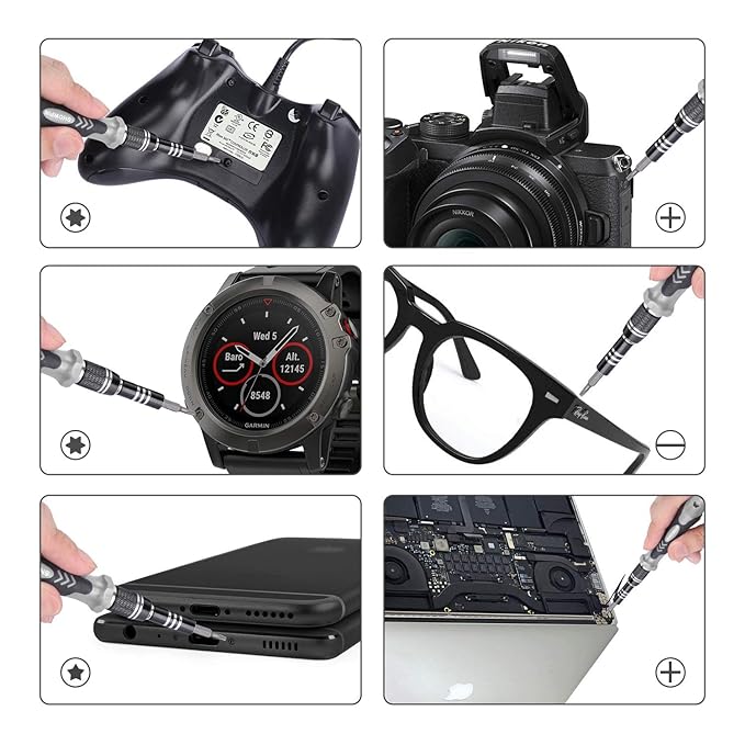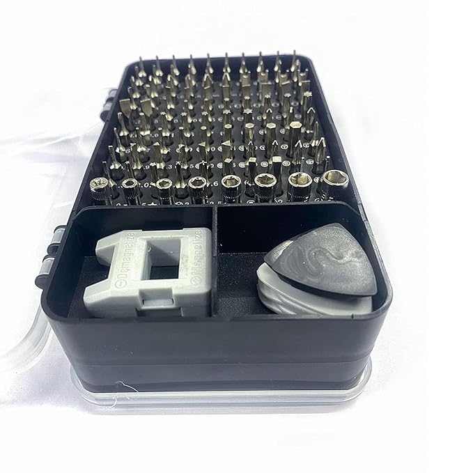 - Powerful Functions122 In 1 Precision Screwdriver Set Contains 98 Screwdriver Bits, 3Torxtr Screwdriver Bits And 21 Auxiliary Tools, Such As Screwdriver Handle, Flexible Shaft, Extension Rod, Magnetizer, Magnetic Pad, Cleaning Brush Etc. Own This Toolkit, You Can Replace The Battery, Screen And Other Parts Of The Smartphone, Tablet, Laptop, And Upgrade The Hard Disk And Performance Of The Computer And Pc, Disassemble And Repair Ps4, Xbox And Other Game Consoles, Repair Drones, Cameras, Etc.