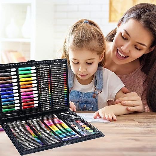 - ALL-IN-ONE ART KIT: A complete set art kit for kids. This deluxe art supplies for artist includes 180 high-quality art supplies, from oil pastels to acrylic paint, all neatly organized in a wooden case. Wonderful colour kit.