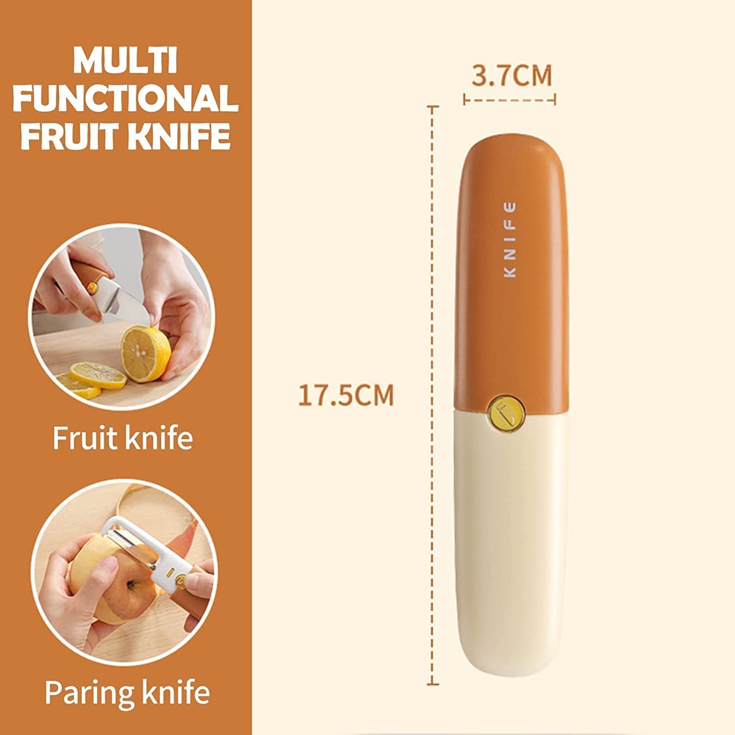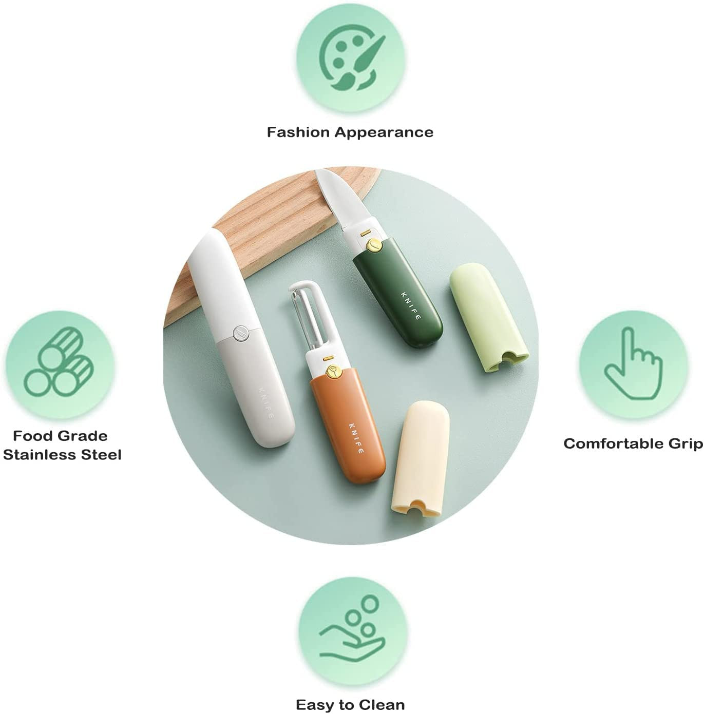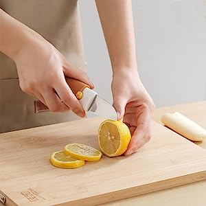 - Dual purpose design: one side for knife, the other side for peeling Use the side of the peeler to peel hairs and vegetables; It uses the side of the knife for cutting and slicing, which is ideal for peeling and peeling various vegetables and fruits, including potatoes, apples, pears, carrots, cucumbers, mango, kiwi, orange, and more.