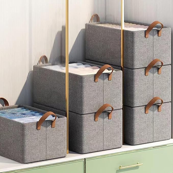 - 【Space Saving】Sturdy side design makes these bins collapsible which will take full advantage of your closet shelf, and also can be folded flat to save space when not in use.