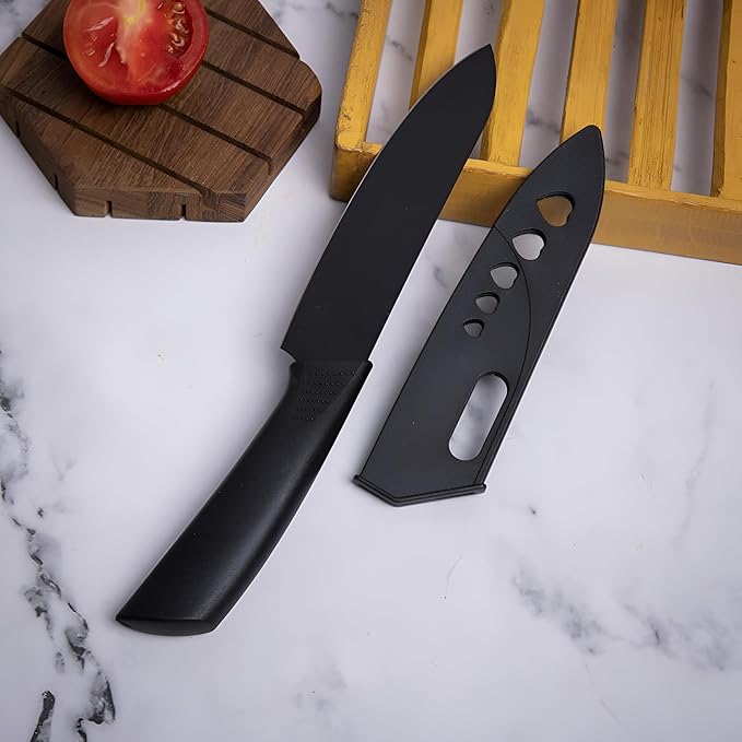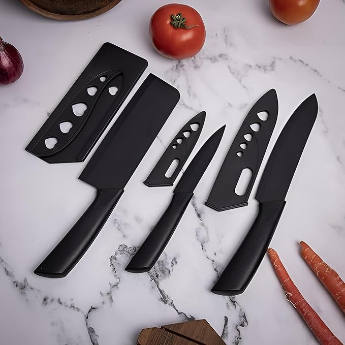 - Complete Kitchen Knife Set: Includes 5 versatile stainless steel knives, 1 peeler, and 1 kitchen scissors—essential tools for everyday cooking and food prep.