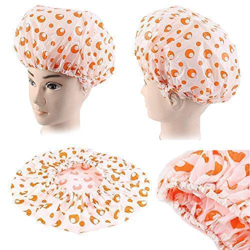 shower cap not only waterproof but decorative. However, simpler designs are made from one layer of a waterproof material. Designs invariably contain an elastic edging to keep them in place. Shower caps are used In hair mask treatments or hair dyes. They trap in the heat so that the treatment or color sets in. Often Plastic bags are used as shower caps. They are important beauty tools in spas. Shower caps are also worn when receiving a facial mask in a spa.
