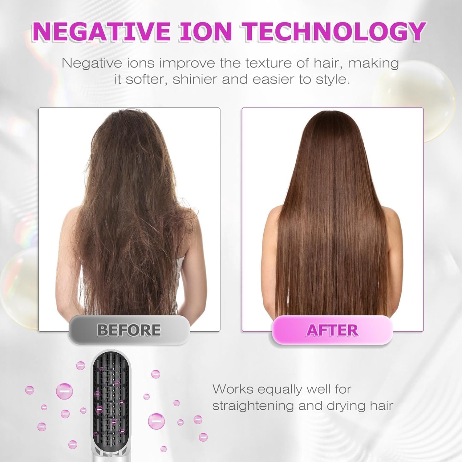 - 【NEGATIVE ION TECHNOLOGY】The blow dryer brush adopts negative ion technology, which can effectively protect your hair. The negative ions released by the blow dryer brush during operation can effectively avoid the generation of static electricity, and maintain sufficient moisture in the hair, so that the hair becomes soft and shiny. Come and use this anion hot air brush to help you rebuild healthy hair