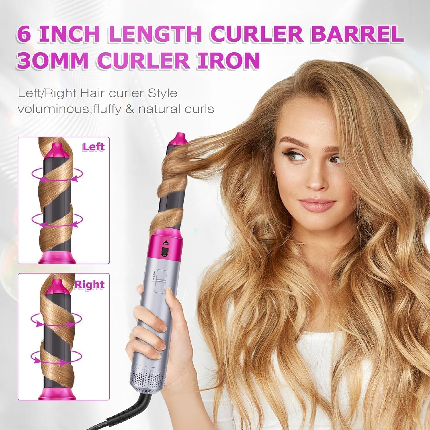 - 【5 IN 1 HOT AIR BRUSH】 This multi-function blow dryer brush has five interchangeable heads that allow you to create different styles while drying your hair. You can use it as a hair dryer, curling comb, straightening comb, left and right adsorption curling iron, and you can replace different brush heads with just one touch. Owning this hair dryer brush can meet your different needs, allowing you to easily create a salon effect at home