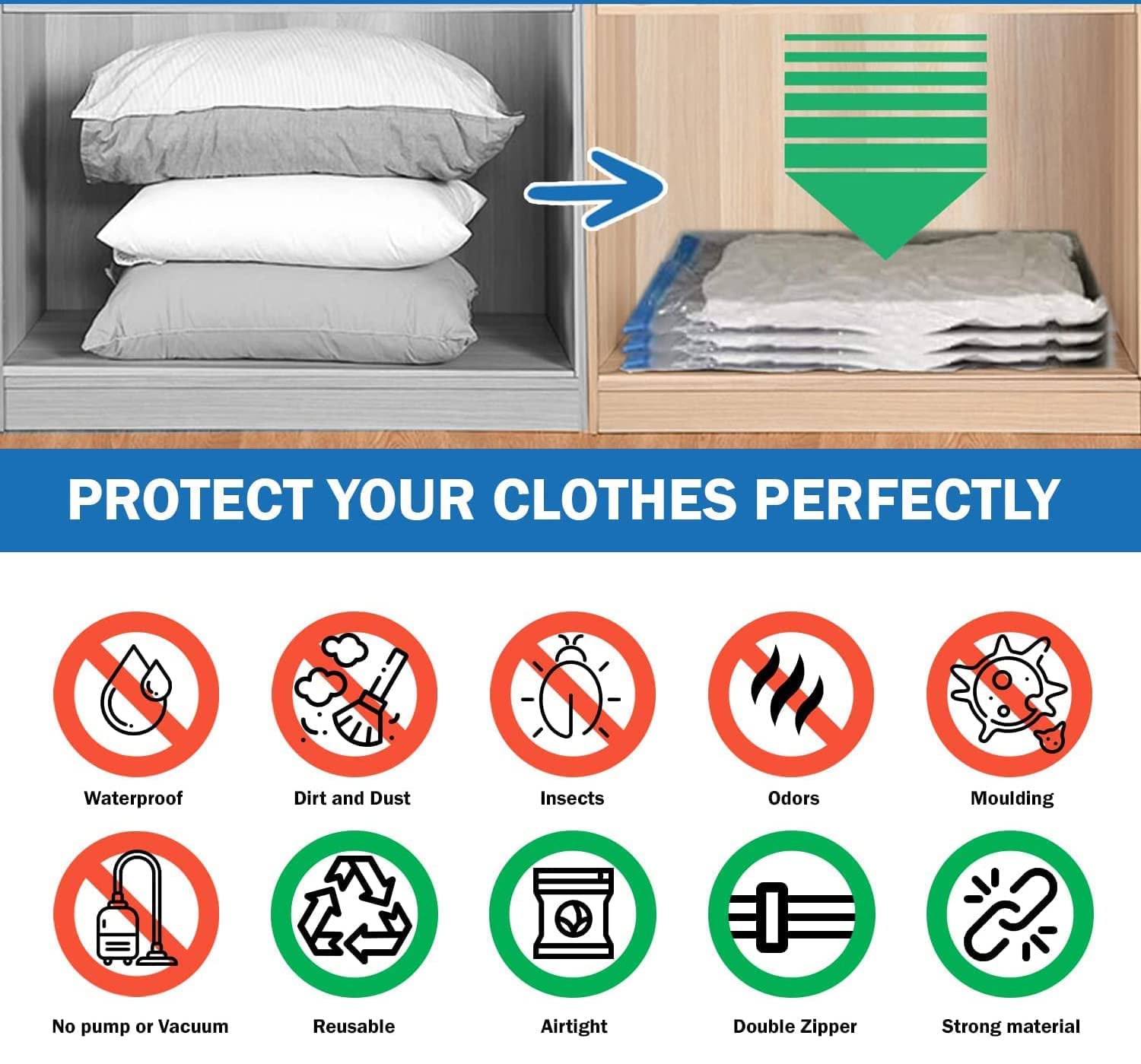 5 PCS Vacuum Storage Bags with Pump – Reusable Space Saver Seal Bags