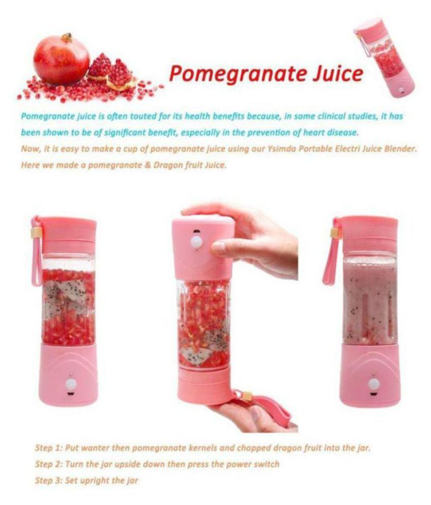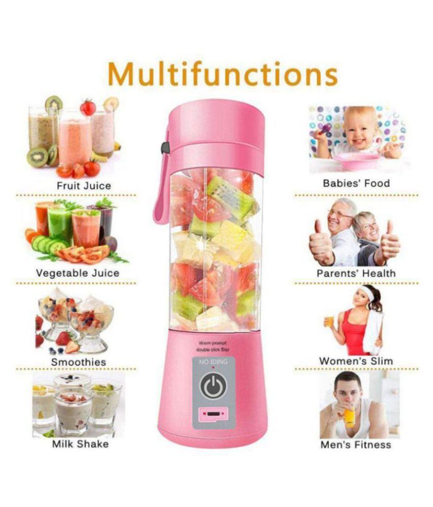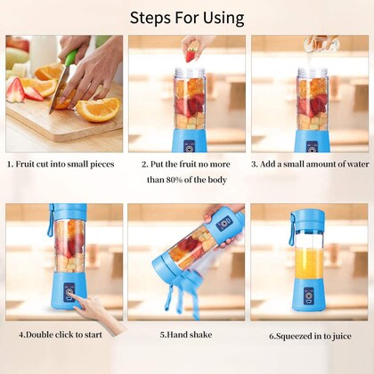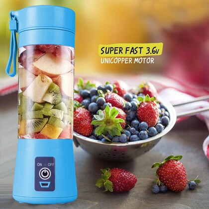 ood grade healthy material. The cup cover is made from food grade PP, cup body is made of food grade GPPS, while base and blades are made from food grade ABS and food grade stainless steel, so its material is no-toxic, BPA free, and healthy-friendly. Rechargeable design. With built-in 2 x 2000mAh lithium battery, powerful endurance, it can be used for a long time. USB charging way is convenient for you to charge it. 22000rpm/ minutes-quick motor rotation. Stainless-steel micro-mesh cutter/strainer can turn a dense beet into a smooth juice in seconds. Easy to clean. The cup cover, filter net, body are all removeable, easy and convenient for you to clean. Juice a variety pf fruits and vegetables in seconds. Just put the cutted fruits into the cup,