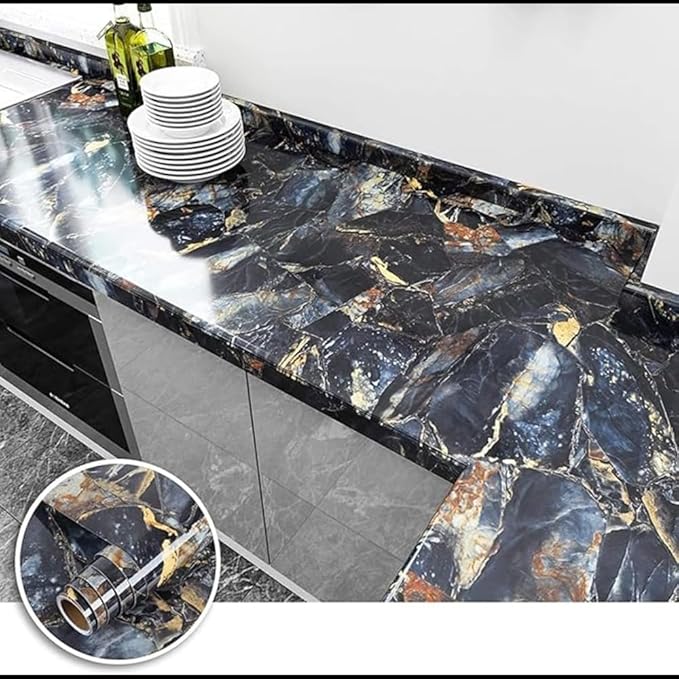 Freshen your space : This Marble Effect Paper provides a more attractive look for any item, and is economical to renovate old furniture in a quick and easy way without having to invest a lot of cash. Waterproof and anti-oil is easy to clean. Great for kitchens, bathrooms, home and office applications.