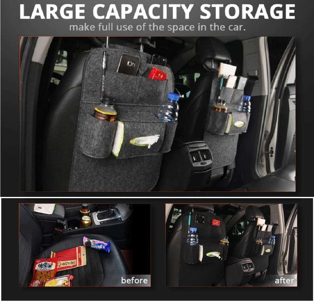- Keep your car clean - you could wipe clean with soft cloth, The back seat organizer is made of luxury pu leather to ensure durability and eliminate stretching or shrinkage, Waterproof backing protects the car seat upholstery from liquid spills and stains