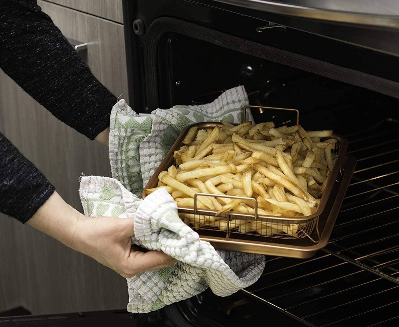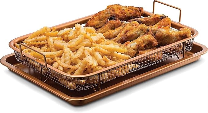 360° Air Circulation Design: The elevated mesh basket promotes even heat distribution, delivering perfectly crispy results—just like an air fryer, right in your oven.