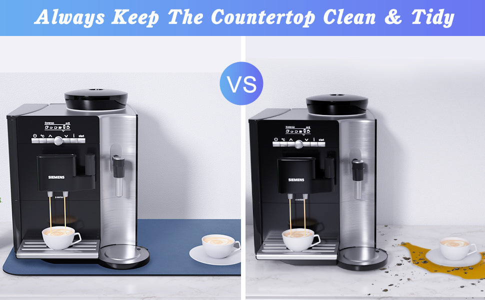 - RUBBER BACKING: The natural rubber bottom of the coffee machine pad has a good anti-slip effect. Put the coffee maker on the rug, and the anti-slip bottom will be absorbed on the table to prevent it from moving. The waterproof bottom can prevent spilled liquid from damaging the tabletop and keep the kitchen countertop clean for a long time.