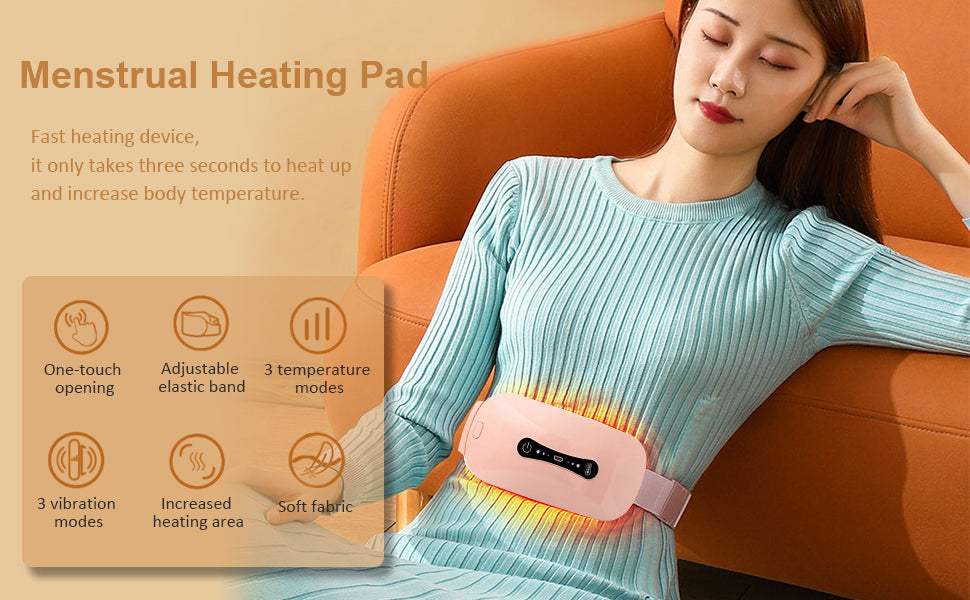- 【Widely Use】The pink menstrual relief pad can be used in multiple scenarios. The belt is charged through the USB port. You can have a break with its heating or vibration features on at home, at the workplace, on the way to work, or in other scenarios