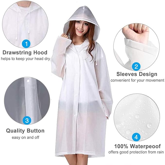 - FOR OUTDOOR ACTIVITIES:- The long sleeves with elastic cuffs, big drawstring hood and snaps closure design will keep your arms, head, and neck dry. Suitable for all seasons and outdoor activities, like parks, marathon, shows, water rides, travel, walking the dog, boating, fishing, hiking, camping, labor protective clothing and etc, even a great kit for Halloween costume and photoshoot.