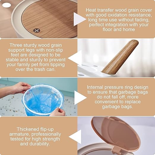 - Crafted from high-quality materials, this trash can is built to withstand daily use. Its sturdy construction ensures longevity, making it a reliable addition to your home.