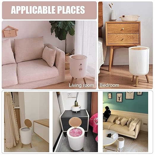 - Elevate your home's aesthetics with this sleek, compact trash can. Its minimalist design seamlessly fits into corners, making it ideal for small kitchens, bathrooms, bedrooms, and living rooms.