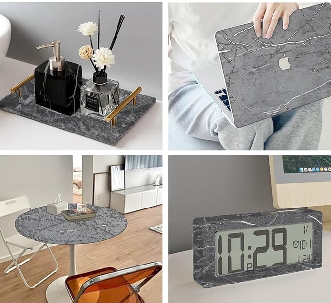 MULTIPLE USE: Ideal for DIY projects. Apply Marble Contact Paper on smooth surfaces like cabinets, countertops, notebooks, and walls. Ensure peel-and-stick wallpaper lies flat; press the black marble design firmly with a dry towel for a secure fit.