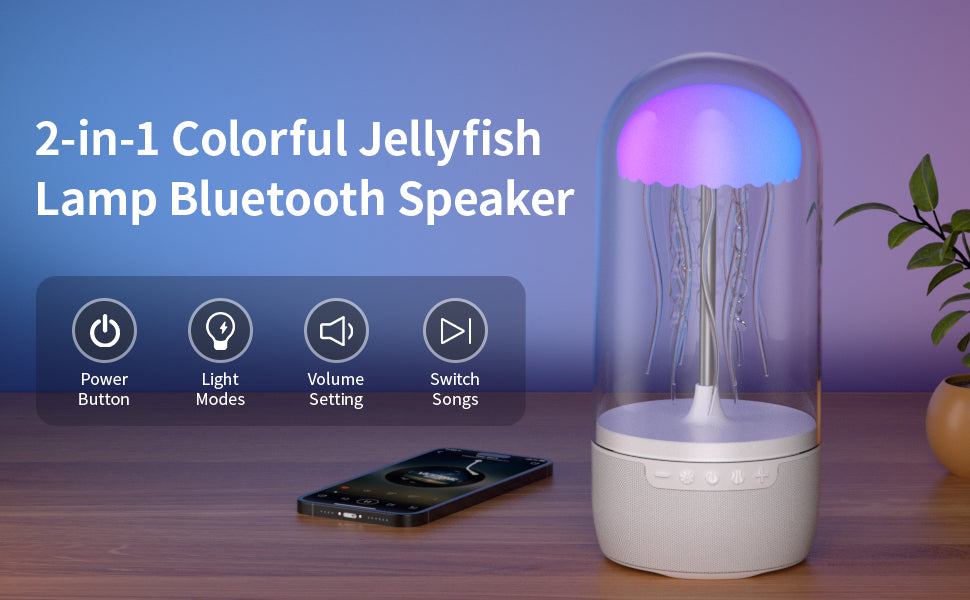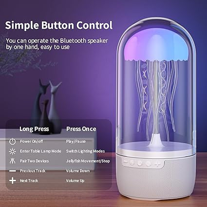 - MULTIFUNCTIONAL AMBIENCE:Jellyfish speaker lamp can customize your mood with adjustable lights and sounds. Choose from a variety of colors and lighting modes to match your desired ambiance. Perfect for relaxing, meditating or creating a unique atmosphere for any occasion.