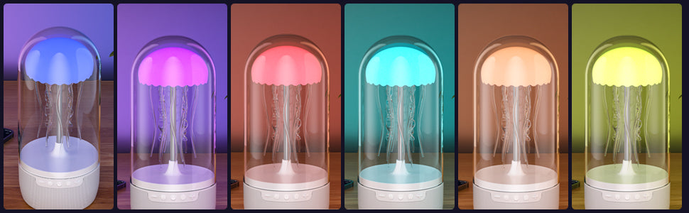 - TRANSFORM YOUR SPACE: Immerse yourself in the serene beauty of an underwater oasis with our Jellyfish Mood Light Speaker. Eight multi-colored LED lights mimic the captivating movements of jellyfish, creating a soothing and enchanting atmosphere.