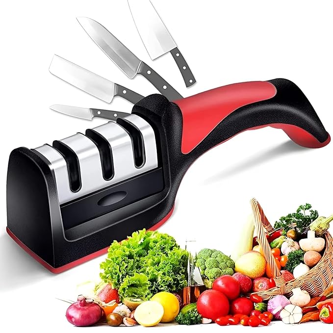 - Premium Quality: With our professional knife sharpener kit, you donâ??t have to be a chef to cook like one! Crafted from solid ABS plastic, itâ??s strong, durable and designed to last a lifetime. Made with high quality materials, knives will work like new