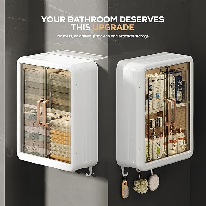 Made from high-quality durable plastic, this cabinet is strong, lightweight, and easy to install. The bottom hanging hooks offer extra storage for brushes, towels, loofahs, or small accessories, making it a complete storage solution for modern homes.