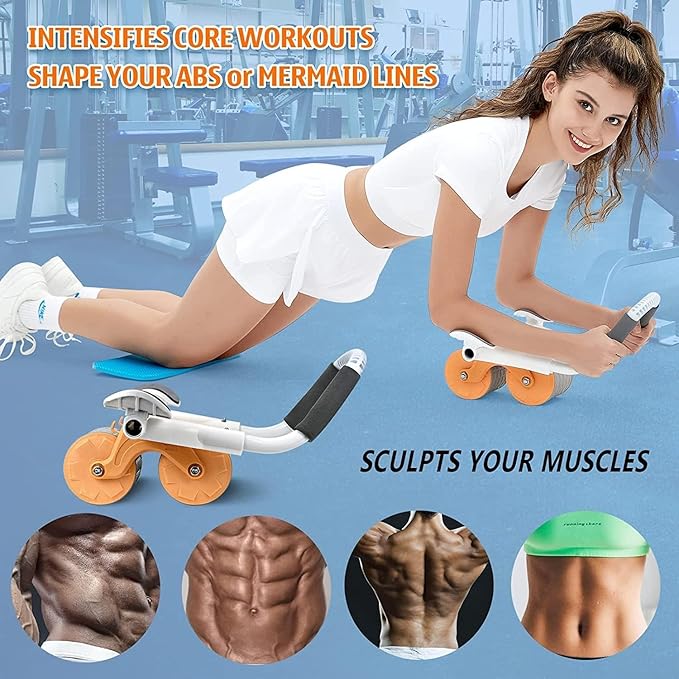 - The design of 2 rollers can reduce the wheel swing, two wheel built-in spring can prevent the wheel from slipping during smooth exercise. automatic rebound function can protect you from injury during exercise, especially suitable for beginner.