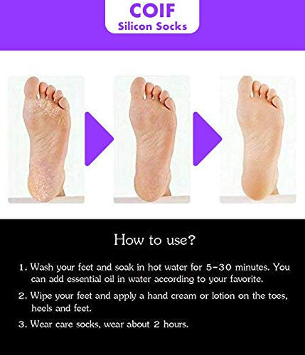 Material: Silicone. Size: CN 40-44. Silicone material is lightweight, soft, safe, non-toxic and harmless to your feet. Preventing and repairing cracking or peeling, softening dead skin and improving rough skin for foot. Preventing or curing plantar fasciitis, metatarsalgia, corns, calluses, bunions, blister. Air holes can provide enough air for your feet to breathe and wick moisture. Protecting toes by reducing friction between them. Can be worn under or over socks with bare feet, which is reusable and washable. Type: Foot Treatment Function: Foot Protector How To Use: 1. Clean your feet. 2. Soak your feet in hot water for about half an hour. 3. Applying moisturizer evenly. 4. Put on silicone socks. Package Included:1 Pair Silicone Socks
