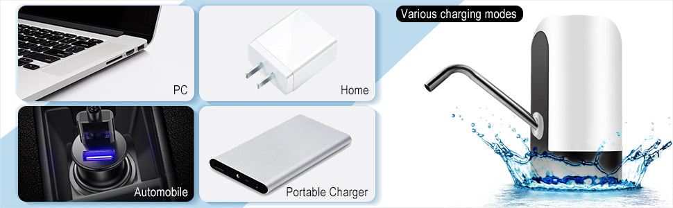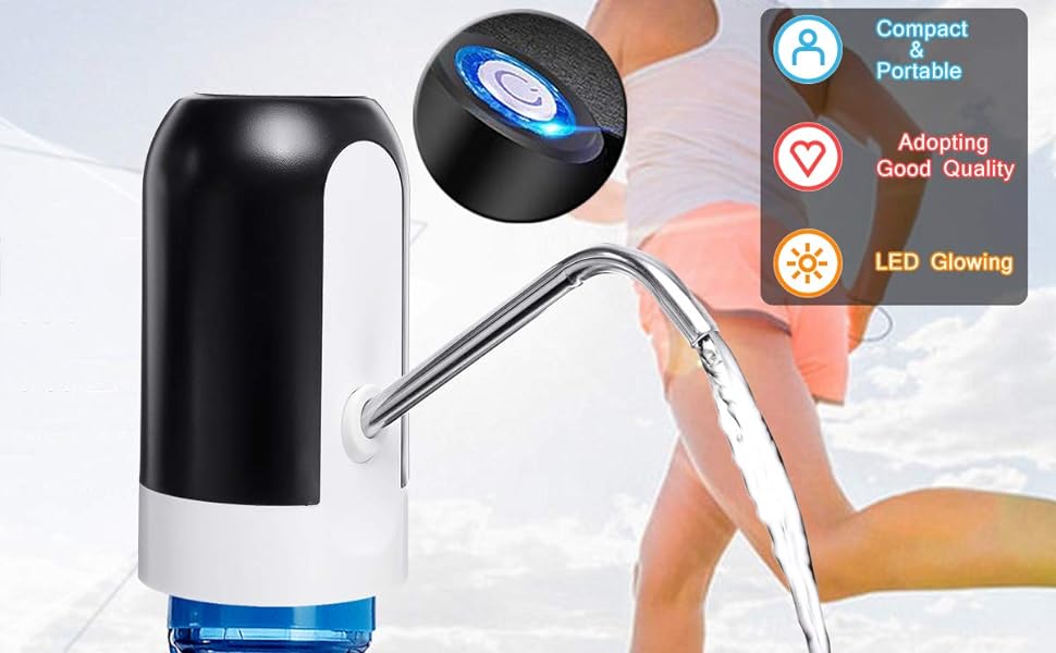 - ◘ USB Rechargeable Battery: Built in rechargeable 1200mAh battery. Can used for 30-40 days or around 4-6 bottles of 5 gallon water once full charged. No need to charge every day.