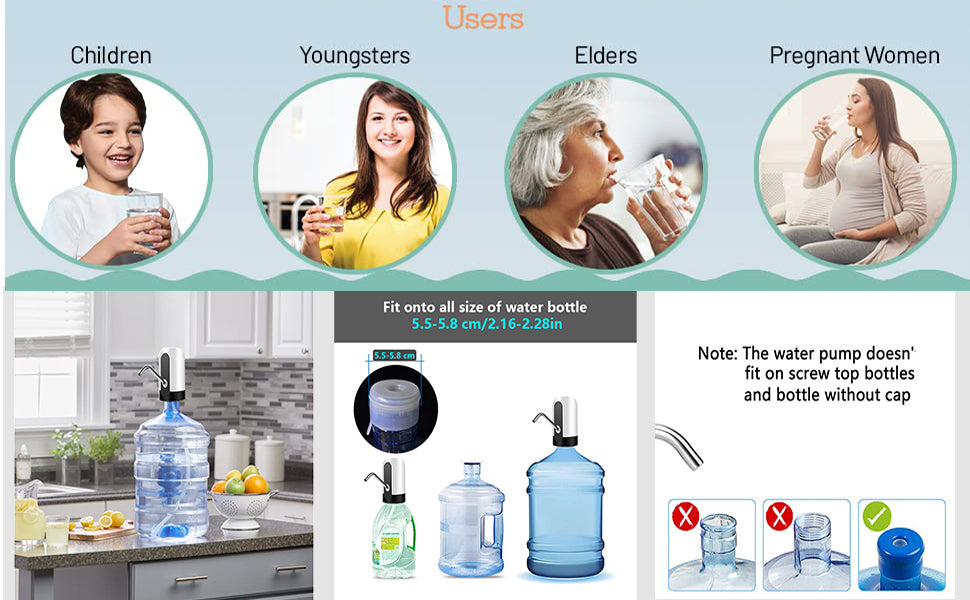 - ◘ High Compatibility: The electric pumping device suitable for pure bottled drinking water, suitable for a variety of models gallon barrel without pry the lid.