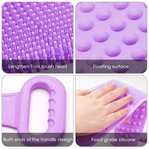 - Gentle Exfoliation: The silicone shower body scrubber extends 1cm dense brush head, penetrates into pores to clean dirt, and freshens. The silicone back scrub is not too coarse to irritate sensitive skin and it ensures anti-slip and comfortable grip allowing you to massage and clean your back and other hard-to-reach body areas with ease.