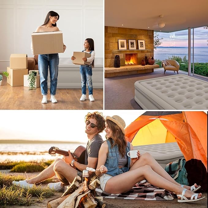 The soft, flocked top surface provides a smooth and comfortable feel, while the sturdy air coil construction ensures proper body support throughout the night. Equipped with a built-in air pump, the bed inflates and deflates quickly, making setup easy and hassle-free.