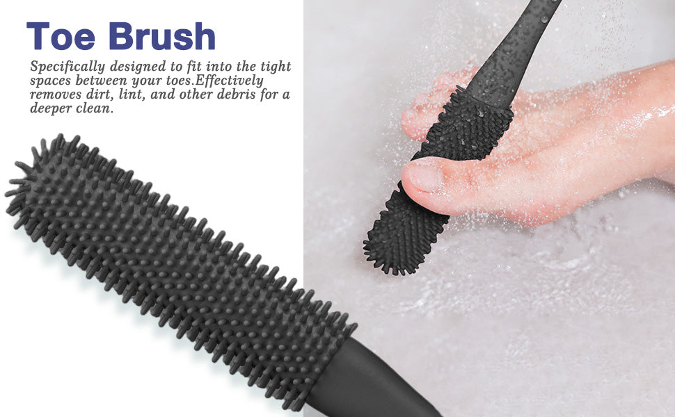 - Foot Care:This foot cleaner tool can clean the dirt between your toes, foot, and removes dead skin from your feet. It can also be used as a lotion on the feet.The long-handled toe brush allows you to clean your feet without bending over, bringing more convenience to your daily life.
